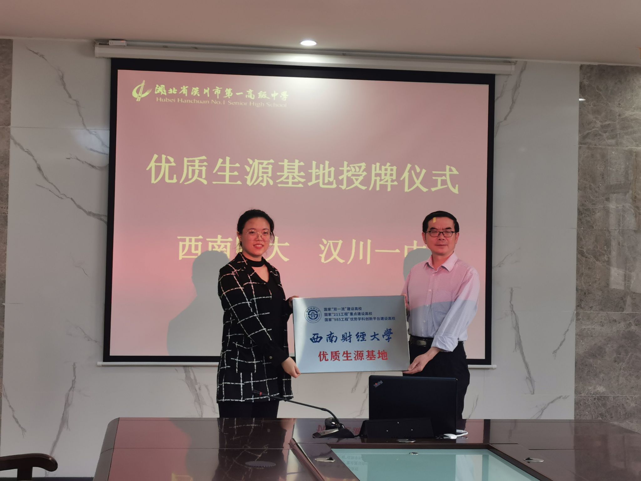 赴湖北省示范中学汉川市第一高级中学,与学校签署优质生源基地协议并举行授牌仪式。汉川市第一高级中学校长胡利红老师等学校相关领导参加了此次会议。