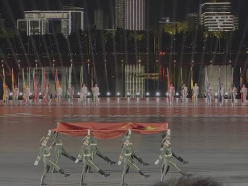 当所有国家代表团依次入场完毕,全场氛围被推向最高潮——最激动人心的时刻如期而至!护旗手们迈着铿锵有力的步伐护送国旗入场,那一刻,全场人员自发起立,目光追随着五星红旗冉冉升起,雄壮的国歌响彻场馆,强烈的民族自豪感在我心中激荡不已。