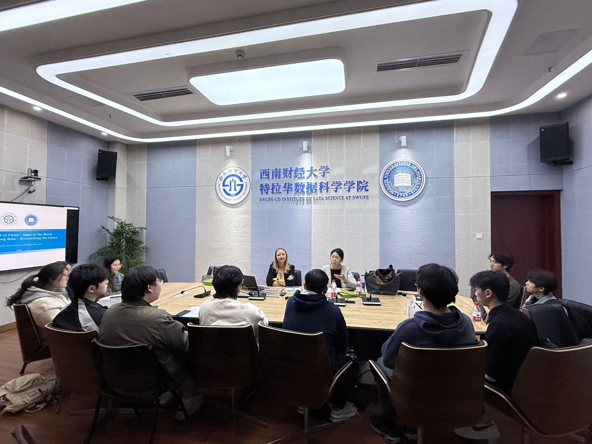 学院院长杨石磊和全球事务与交流办公室赵晓雨接待了来访团队。杨石磊首先介绍了学校的发展历程、学院的育人特色以及首届毕业生的就业和升学情况。特别提到,我院2024届毕业生中有8人获得哥伦比亚大学的录取,其中4人前往深造。Nichole Barbe对我院输送优秀学生表示感谢,并指出这是他们近几年首次录取的西财学生。双方深入讨论了学院课程设置、学生背景提升和研究生项目申请等内容。