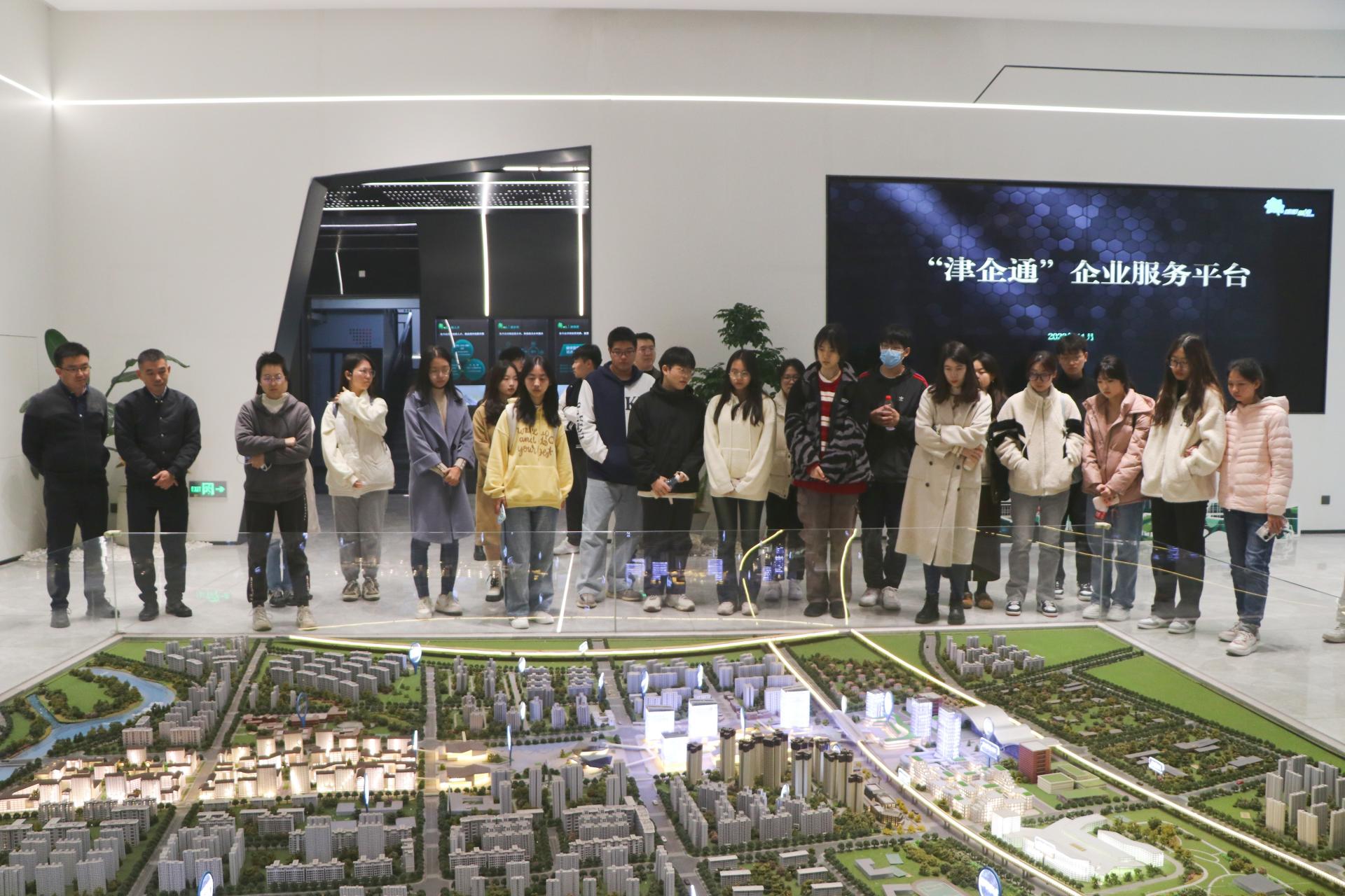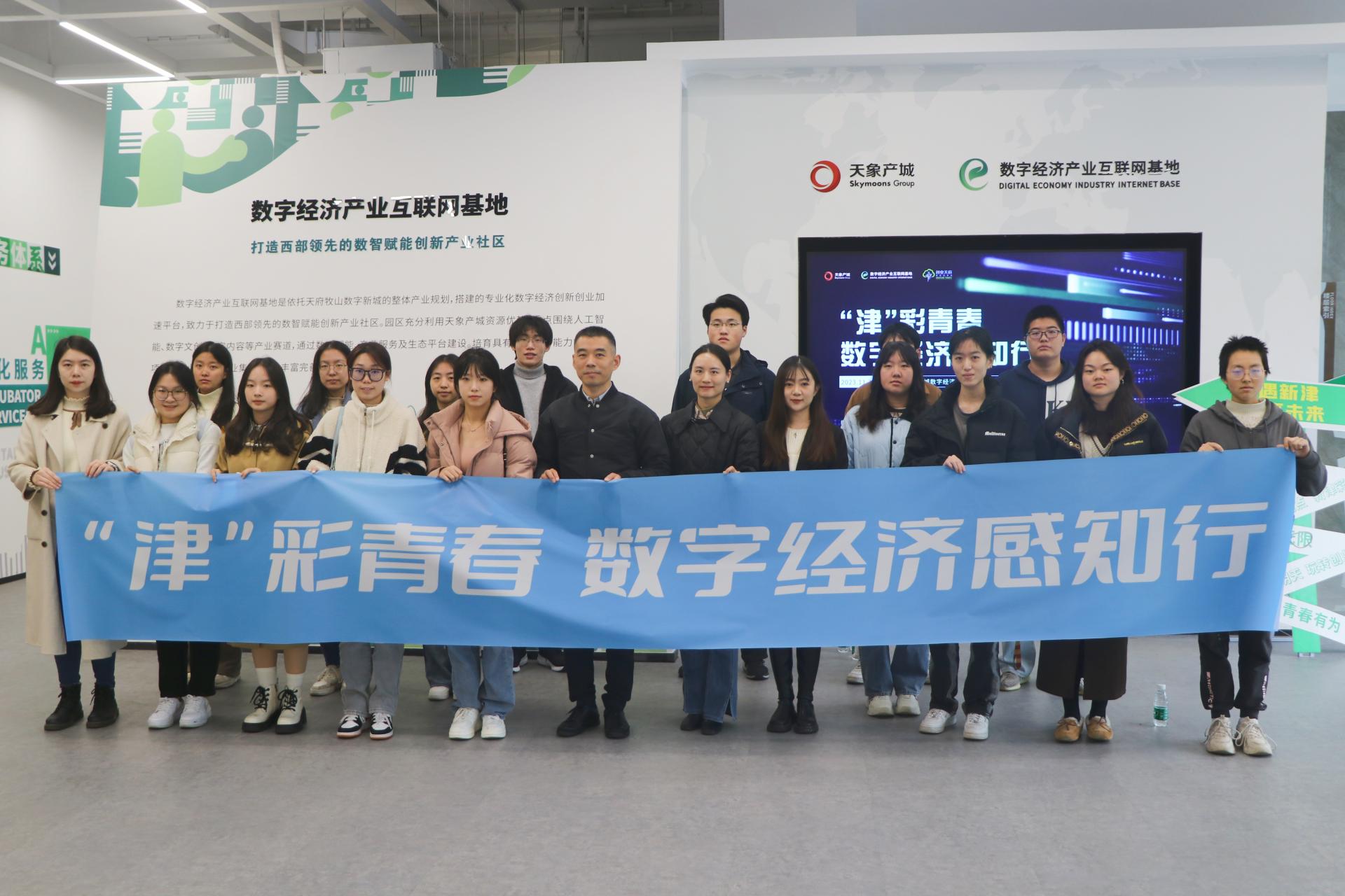 的近30名师生先后前往津津·TOD城市会客厅、天府·数字科技联创中心进行参观,了解牧山数字新城整体发展规划。在天象产城数字经济产业互联网基地,园区负责人郑晶瑶向前来参观的同学们讲解了园区建设的基本情况,并围绕大学生实习实践、就业创业工作进行了介绍。