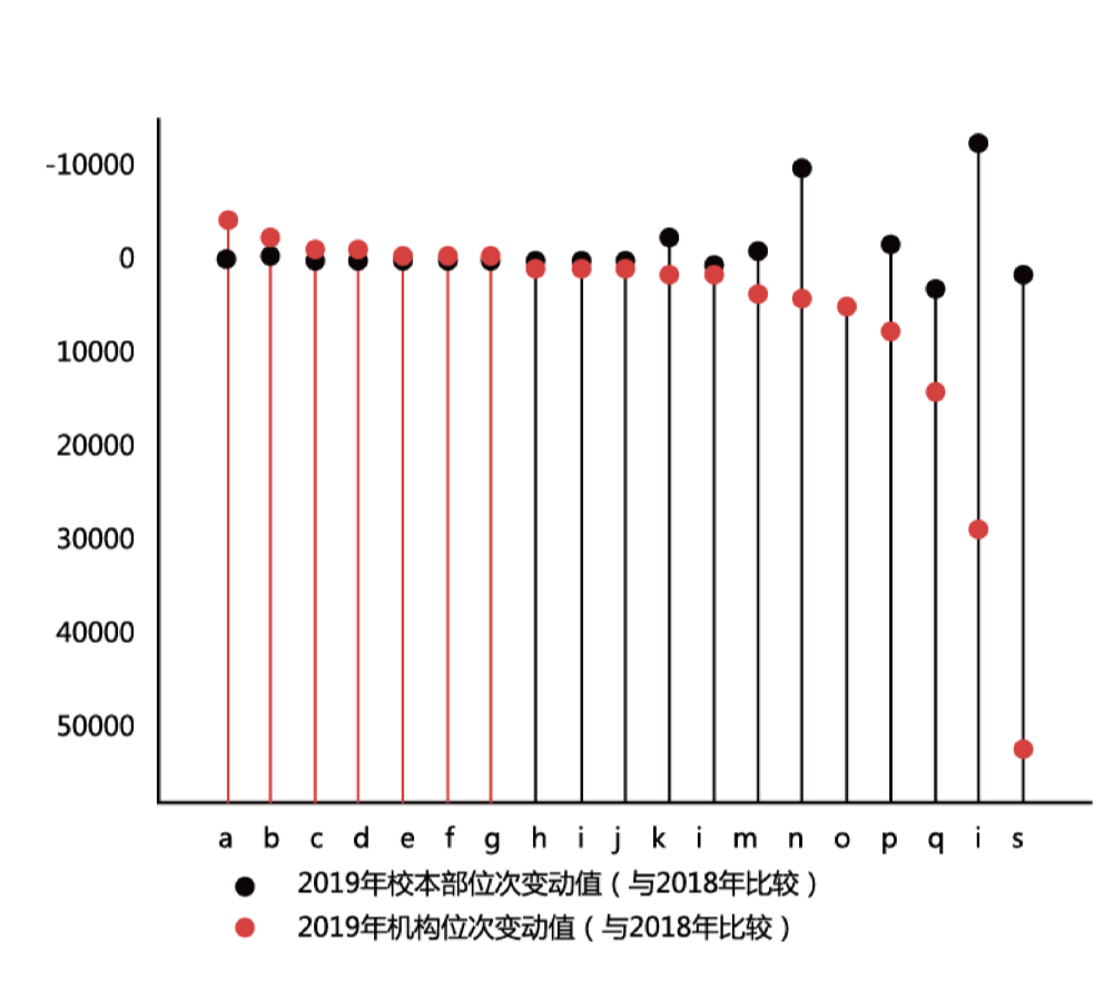 (2019年“本科层次非独立法人中外合作办学机构”与校本部位次变动对比情况)