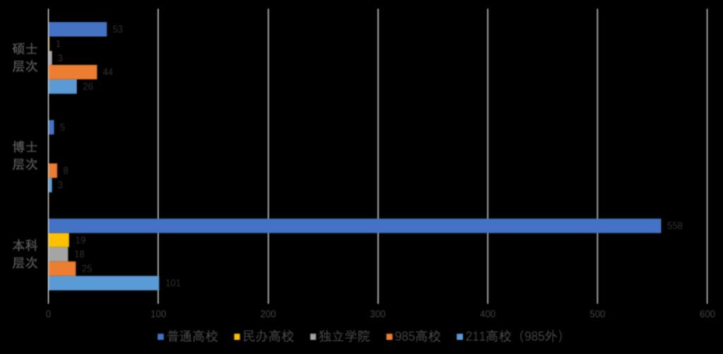 目前我国本科层次中外合作办学项目举办者以普通高校为主,研究生层次的中外合作办学则多聚焦于985和211高校,普通高校和民办高校的中外合作办学主要集中在本科层次。