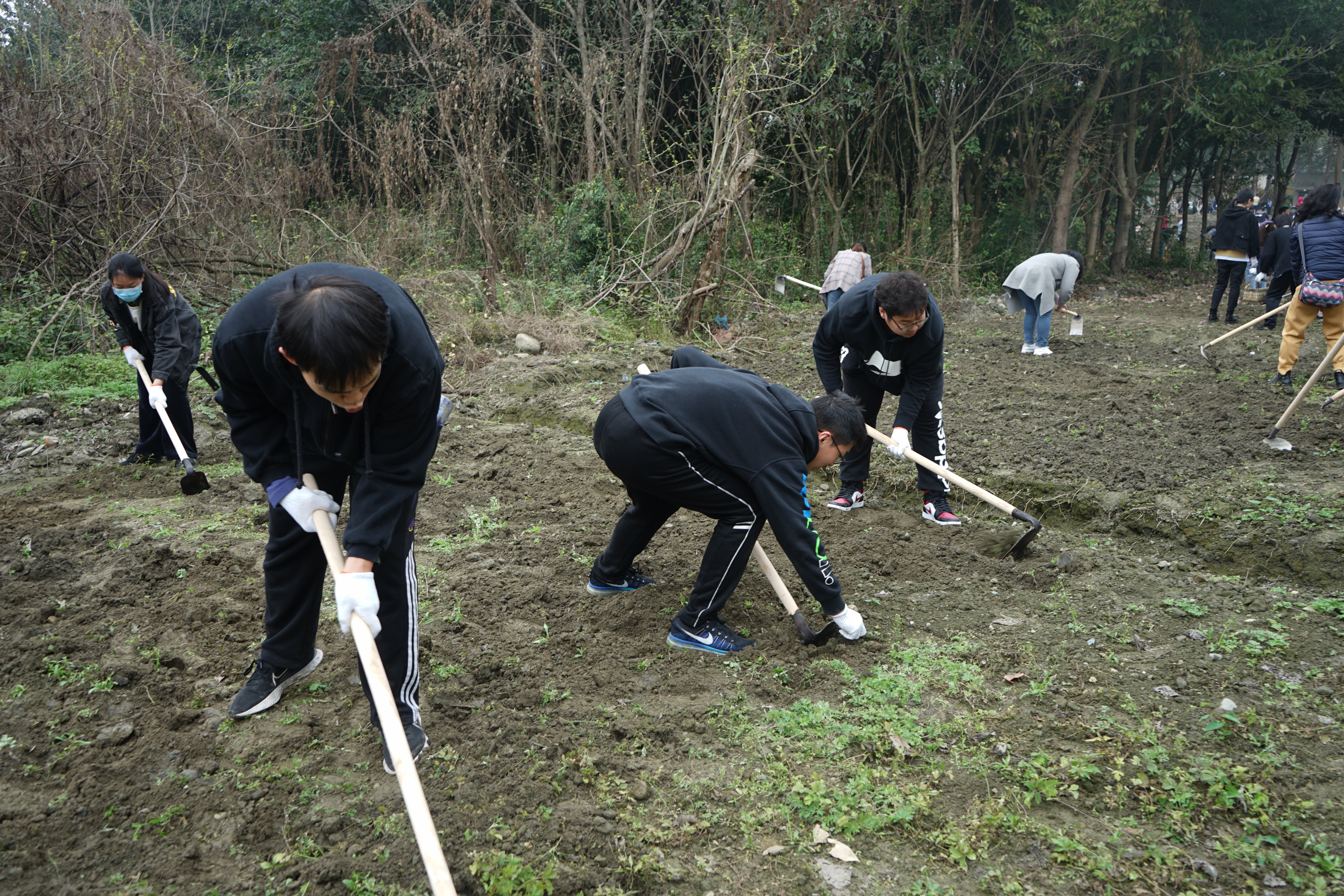 启动仪式后,我院学生在“数据伊甸园”耕地里,齐心协力,分工合作,挖地,除草、松土。党委书记赵德武到我院种植地看望同学们,与同学们亲切交谈,并鼓励同学们用数据科学把果蔬种植好!
