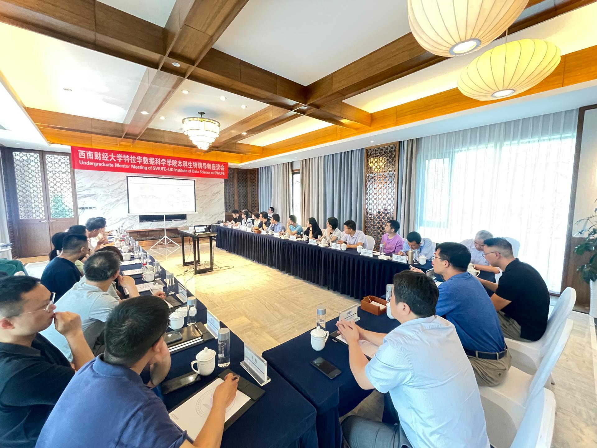 On the morning of July 4th, the SWUFE-UD Institute of Data Science at SWUFE held a meeting to discuss the work process of the undergraduate mentorship over the 2021-2022 academic year. The Joint Program’s directors of various disciplines and 25 of the undergraduate mentors attended this meeting. The meeting was moderated by Yang Shilei, dean of the institute.
