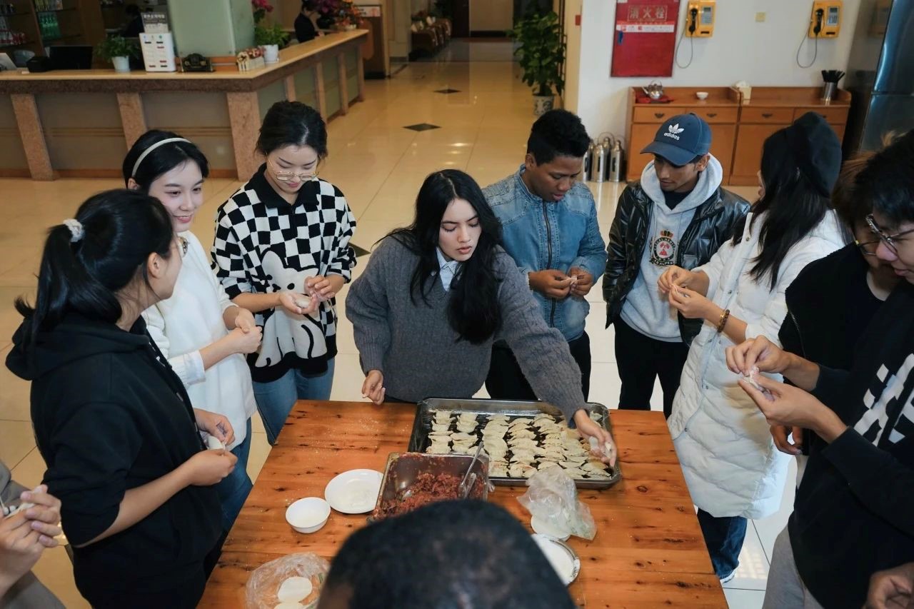 冬至过节源于汉代,盛于唐宋,相沿至今。《清嘉录》甚至有“冬至大如年”之说。这表明古人对冬至十分重视。每年农历冬至这天,不论贫富,饺子是必不可少的节日饭。谚云:“十月一,冬至到,家家户户吃水饺。”12月19日下午,特拉华学生与来自国际教育学院的30位海外留学生(巴基斯坦等多个国家留学生)在柳林食府2层开展了一次特别的活动——“包饺子迎冬至”。