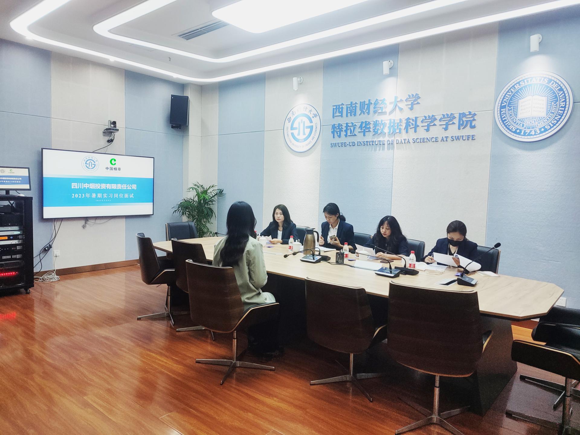 5月8日下午,四川中烟投资有限责任公司在学校格致楼110会议室开展2023年实习实践岗位面试。本次该公司提供了企业管理员、综合管理员、审计员、会计、供应链研究等12个岗位、21个招聘名额,公司党建部(综合部)、企管部(投资部)、财务部,宽窄智慧物流有限公司总经理等4位面试官负责面试工作。