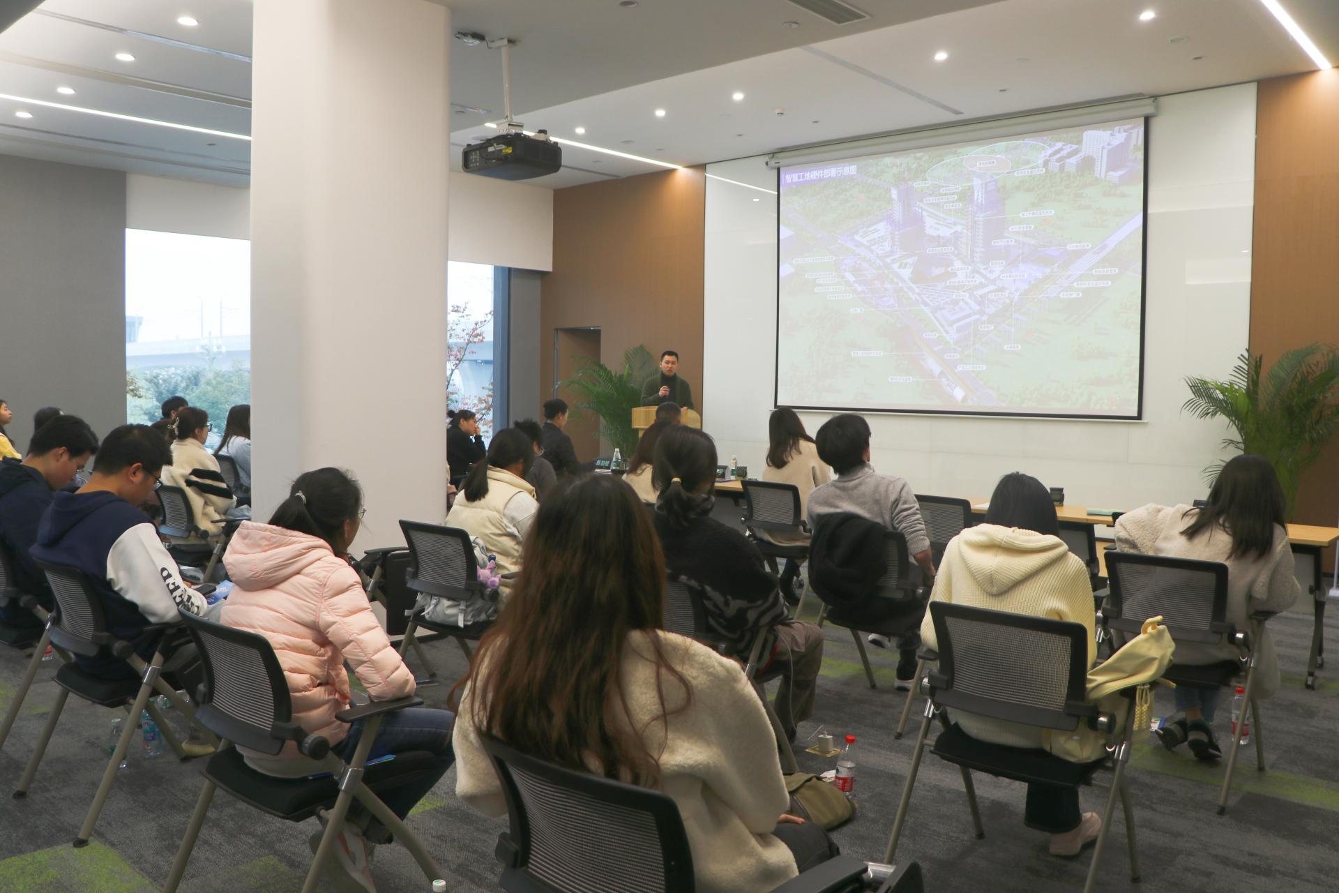 的近30名师生先后前往津津·TOD城市会客厅、天府·数字科技联创中心进行参观,了解牧山数字新城整体发展规划。在天象产城数字经济产业互联网基地,园区负责人郑晶瑶向前来参观的同学们讲解了园区建设的基本情况,并围绕大学生实习实践、就业创业工作进行了介绍。
