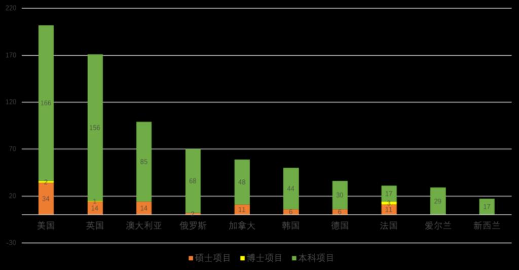 (我国中外合作办学项目数量在前十位的合作国家和地区分布状况)
