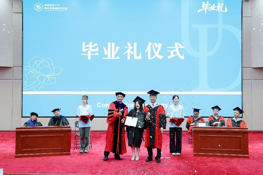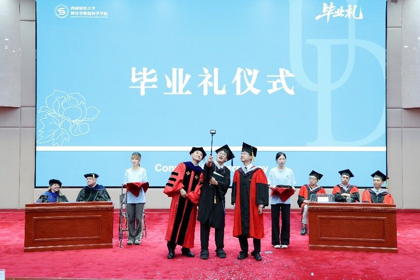 杨石磊、Oliver Yao共同为毕业生授位。身着学士服的同学们依次接过象征学业成就的毕业证书,并用充满青春活力的独特方式,为4年大学生涯留下独家记忆。