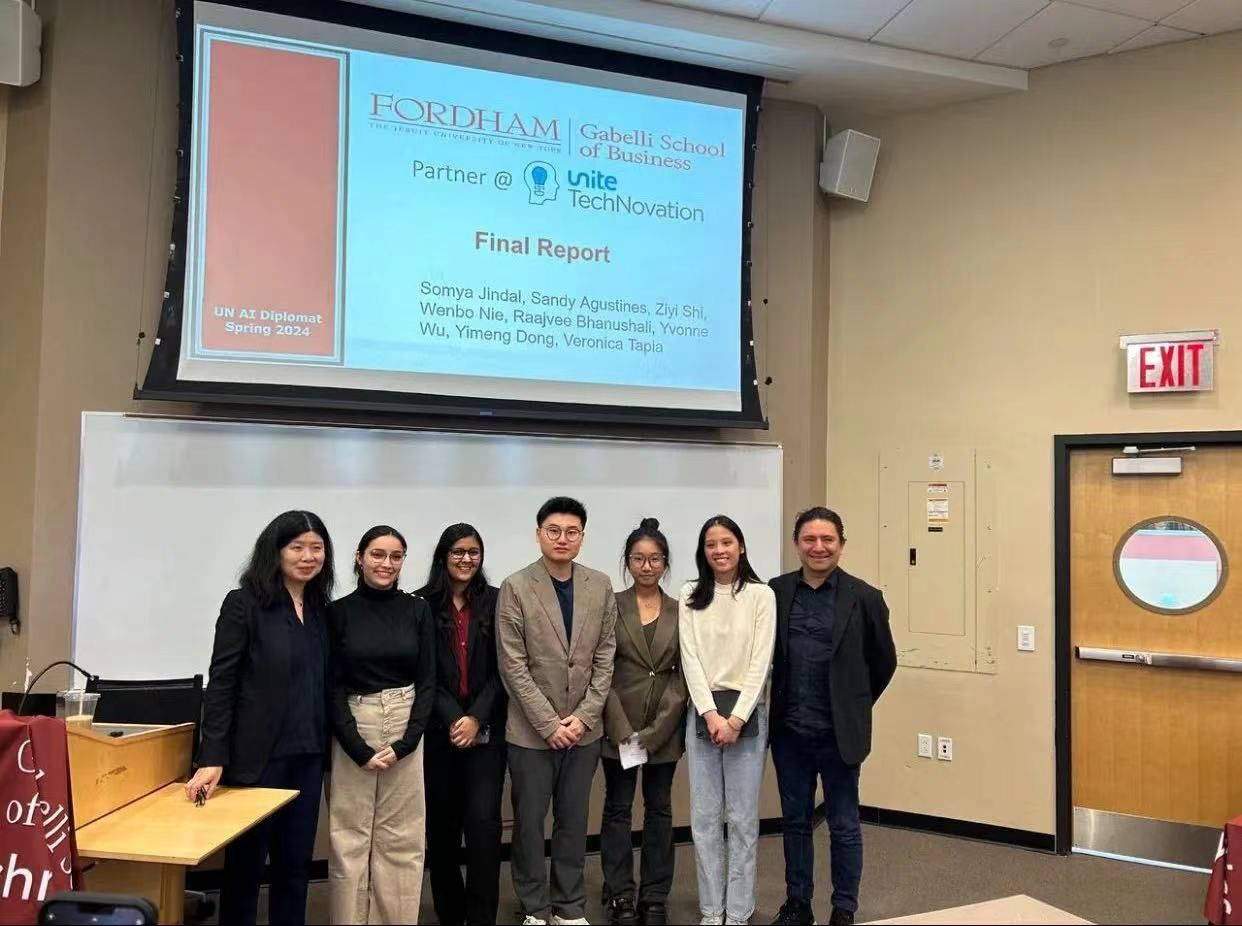 在实习期间,董一蒙积极参与了纽约Fordham大学与联合国合作项目“AI Diplomat”的开发与管理,项目主要涉及人工智能技术的应用开发、项目管理与协调、研究与数据分析等工作。团队致力于开发和优化一个支持外交事务决策的人工智能系统,能够分析复杂的国际关系数据,提供智能化建议,帮助外交官做出更明智的决策。项目还包括与联合国和纽约Fordham大学之间的合作协调,确保项目按计划进行,并通过数据收集和分析,为联合国提供数据驱动的洞察,支持其在国际舞台上的决策制定。最后,团队成员在联合国纽约总部汇报了项目的研究成果、开发进展和应用前景,为项目的未来发展提供了重要参考。